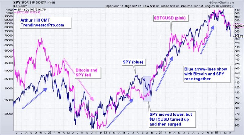 Stocks are in a freefall with selling pressure spreading into industrial metals and other economically sensitive commodities. There are few places to hide in bear markets, and the list of alternatives continues to shrink. Bitcoin, an alternative, is holding up relatively well since March, but this crypto is positively correlated with stocks long-term and has yet to achieve a relative breakout. Today’s report focuses on Bitcoin’s correlation and relative performance.